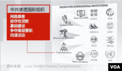 谭德塞博士就是这样,他的前任是中国政府官员--陈冯富珍博士,我在书里也写了她与中国情报机构的关系。我们从由中国政府官员管理的国际电信联盟也看到了这一点,在国际民用航空组织中看到了这一点。当然,国际刑警组织也是这样。所以我们所处的现状是,因为中国官员和中国共产党员已经能够在重要的领导职位上站稳脚跟,他们可以改变这些国际组织的本质。那些以前是支持民主、自由、人权的国际组织,但现在实际上是支持专制主义的,他们实际上是在帮助中国政府实现其政治目标。